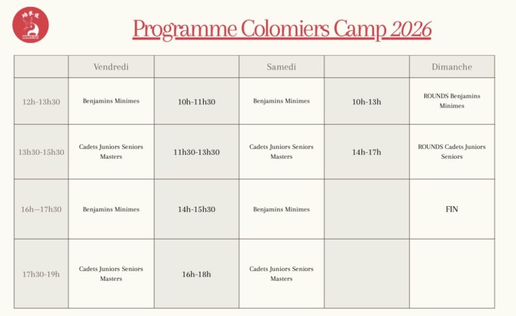 Pour cette compétition vous devrez partir le vendredi 25 novembre pour dormir à l’hôtel. Nous vous partagerons l’adresse de l’hôtel des coachs.